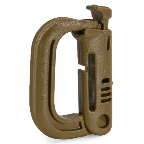 軽量小型のカラビナでPALSウェビングに取り付けてグローブや小物を保持するのに使用します。