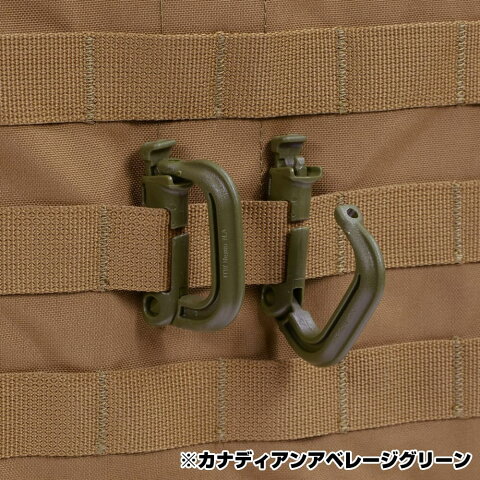 軽量小型のカラビナでPALSウェビングに取り付けてグローブや小物を保持するのに使用します。