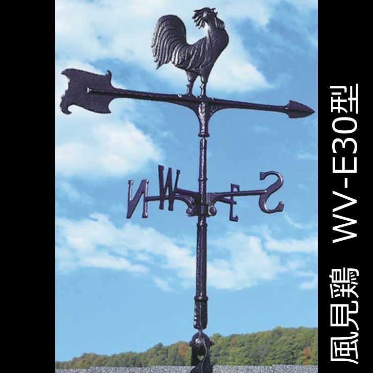 飾り,屋根,レトロ,装飾,家財,アンティーク,風向計,ガーデニング用品,DIY■ 風見鶏WV-E 30型 黒 オーナメント オンドリ 【商品説明】 アルミ鋳物のためサビの出にくい材質です。